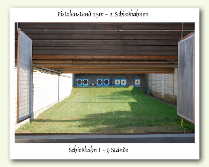Auf den beiden Schießbahnen, von der jede über eine Duell-Anlage verfügt, sind alle Kurzwaffen-Disziplinen (Revolver und Pistole) von cal. .22 bis cal. .45 ACP, Ausnahme Luftpistole, zugelassen. Hier finden auch jährlich diverse Kreismeisterschaften statt.